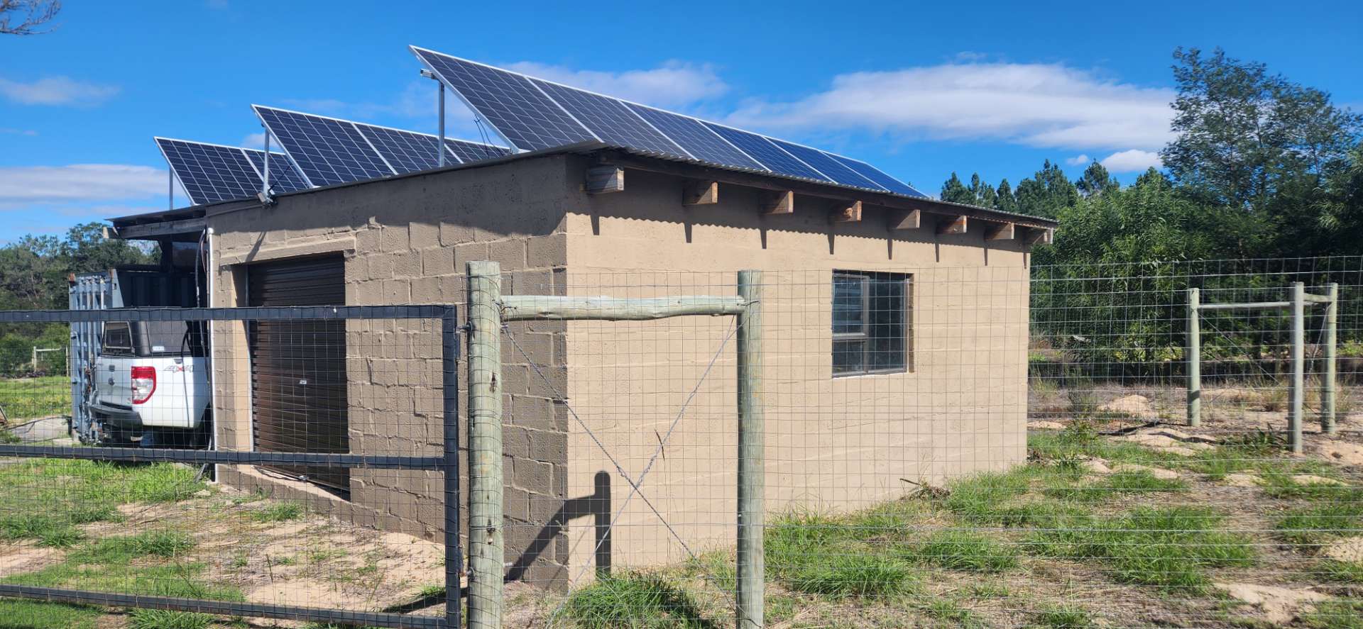 * Electricity supply by means of an 8kW inverter, 3x 4,8 kW batteries and 18 solar panels.