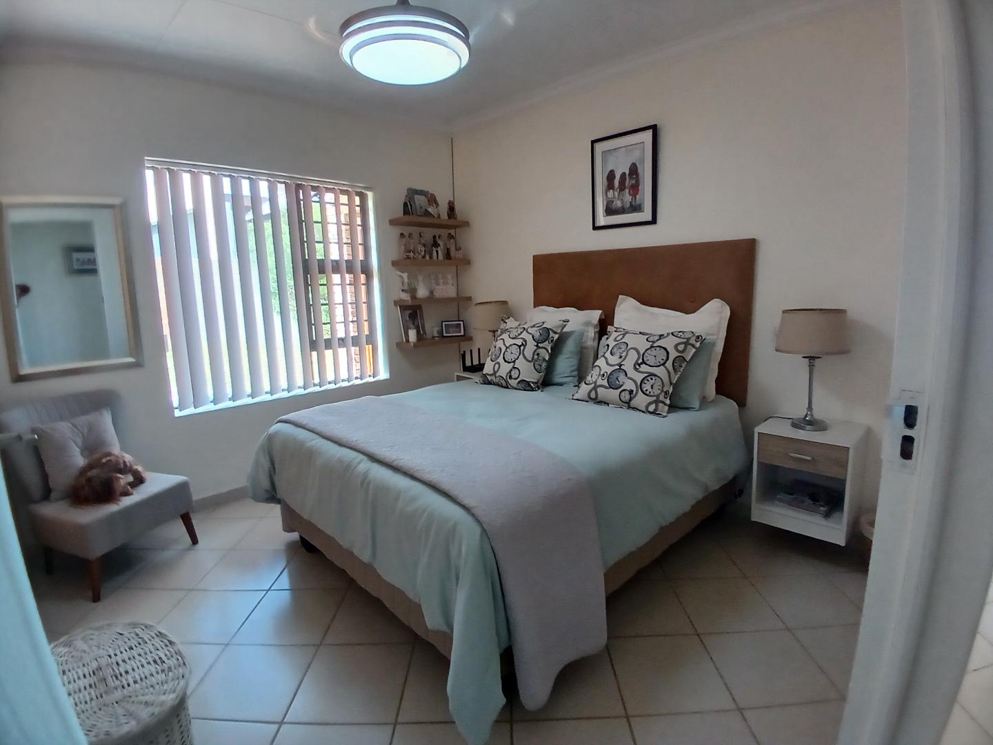 As you step inside, you are greeted by an open-plan kitchen that seamlessly flows into the dining and living areas, creating an inviting space for family and friends to gather. The kitchen boasts modern finishes, ample storage, and a separate scullery to keep your culinary space pristine. Tiled throughout, the home exudes a sleek and contemporary feel, complemented by fitted blinds that provide both privacy and style.