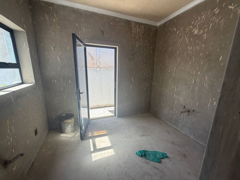 As you step inside, you'll be greeted by high ceilings and elegant laminated flooring that enhance the sense of space and light throughout the home. The open-plan living, dining, and kitchen area is perfect for entertaining, featuring a built-in braai and modern lighting and finishes that add a touch of sophistication.