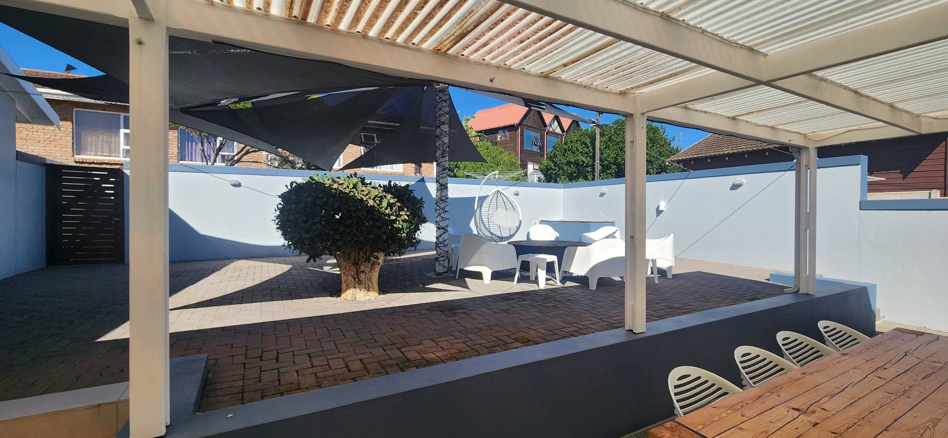A patio and open area in the backyard from the kitchen are ideal for outdoor braai and entertainment opportunities.