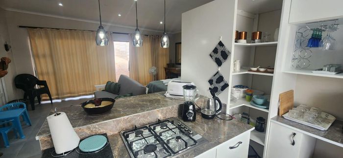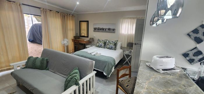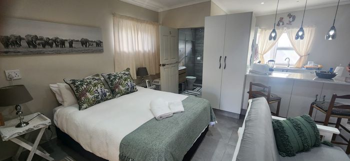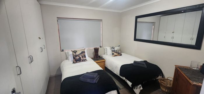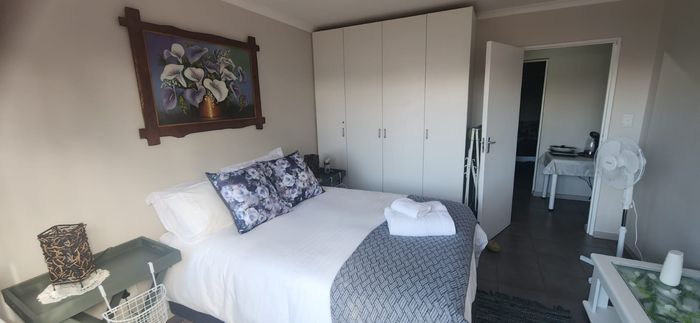 Both the lounge and main bedroom open onto a charming patio area, complete with a built-in braai, where you can enjoy serene views and entertain guests in a relaxed setting. The main bedroom, located on the entrance level, is paired with a modern bathroom for your comfort and privacy.