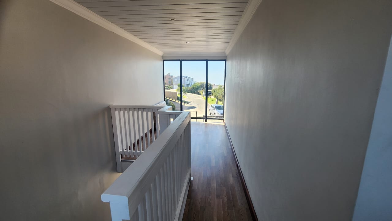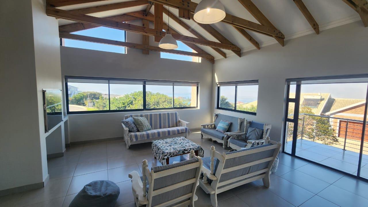 The adjacent scullery and laundry area has a back door leading to the garden area. High vaulted ceilings and sliding doors create a sense of spacious calm and the doors lead to a balcony with magnificent sea views.