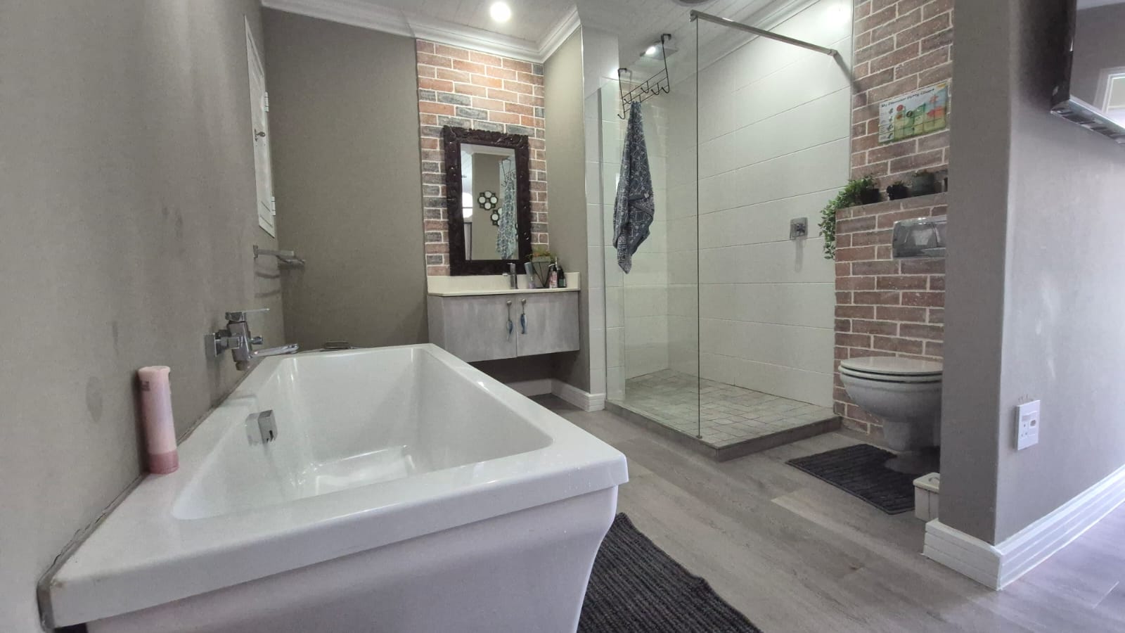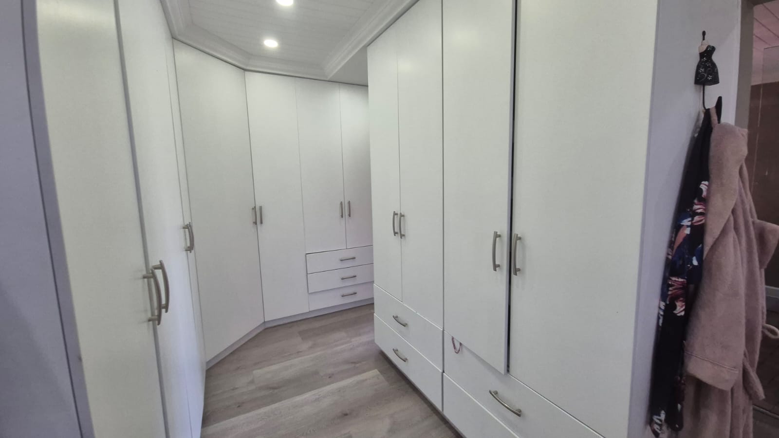There is an extra room for a study and a kids' playroom or gym. The master suite is a serene oasis boasting an expansive layout with elegant finishes and a luxurious en-suite bathroom featuring his-and-her basins, a freestanding bathtub, and an oversized shower. Dual dressing rooms with built-in wardrobes and sliding doors open onto a deck overlooking the estate.
