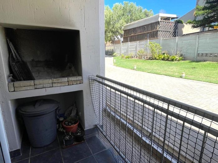 Relaxed coastal living in Island View, Mossel Bay — ground-floor apartment with private balcony and built-in braai, open-plan kitchen, two bedrooms, two bathrooms and covered parking.