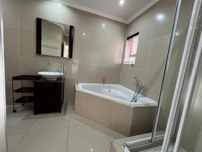 Relax in a peaceful suburban setting with open-plan living and a built-in braai patio for alfresco entertaining — newly built home with three bedrooms, 2.5 bathrooms and double garage.