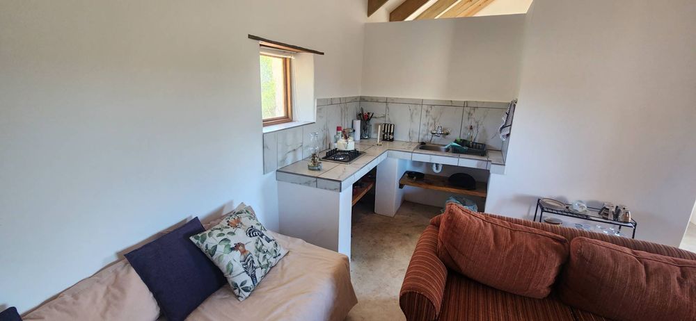 2. Two self-contained cottages are available for guest accommodation or eco retreats with a bedroom, bathroom, living area and fireplace, outside stoep and braai area with beautiful views.